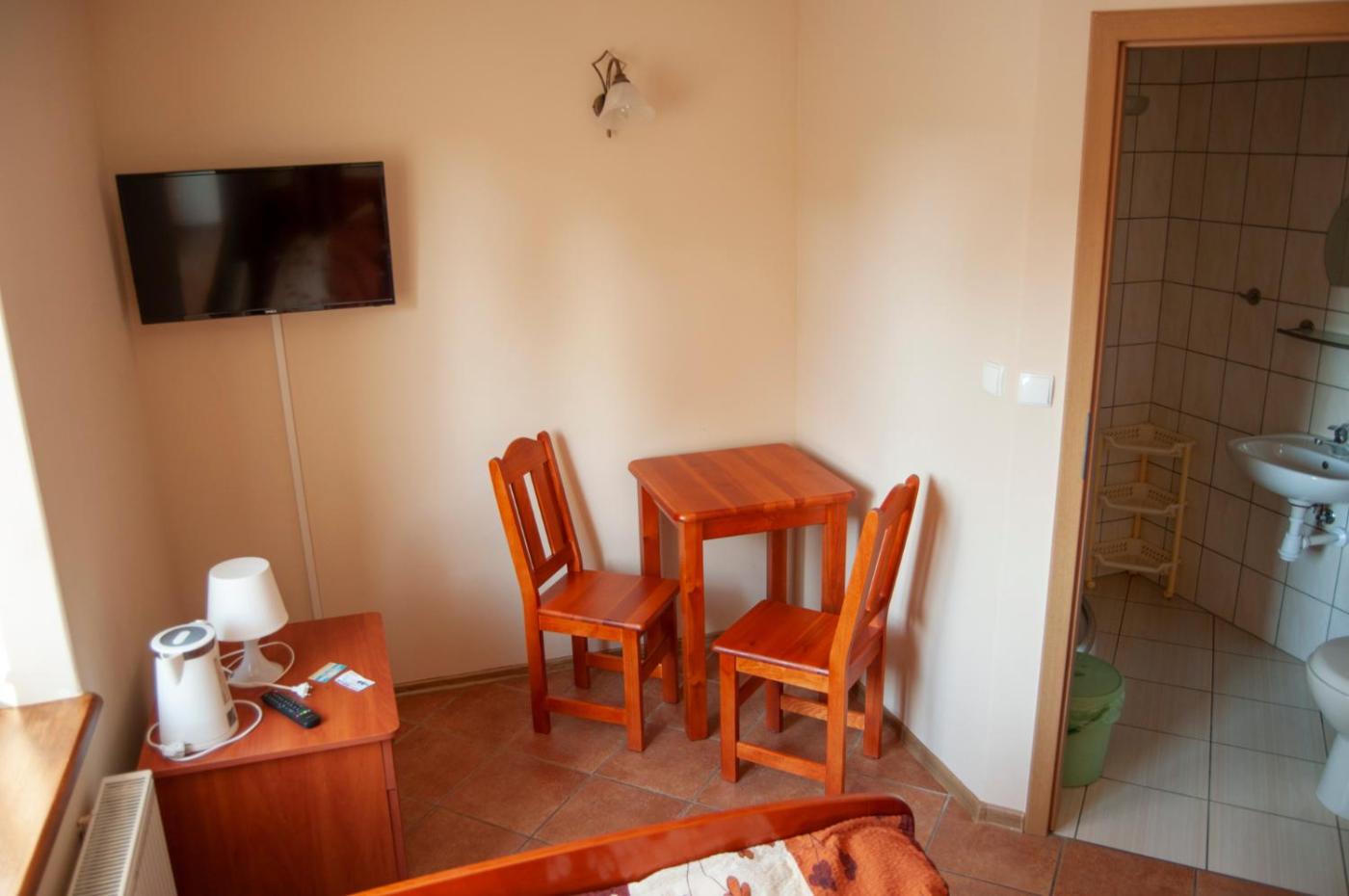 Pokój dwuosobowy z prywatną łazienką. Ten pokój dwuosobowy wyposażony jest w telewizor i czajnik elektryczny. Obejmuje on również prywatną łazienkę. Pokój Dwuosobowy - 2 osobowy. Powierzchnia pokoju ok.: 12 mkw. ;