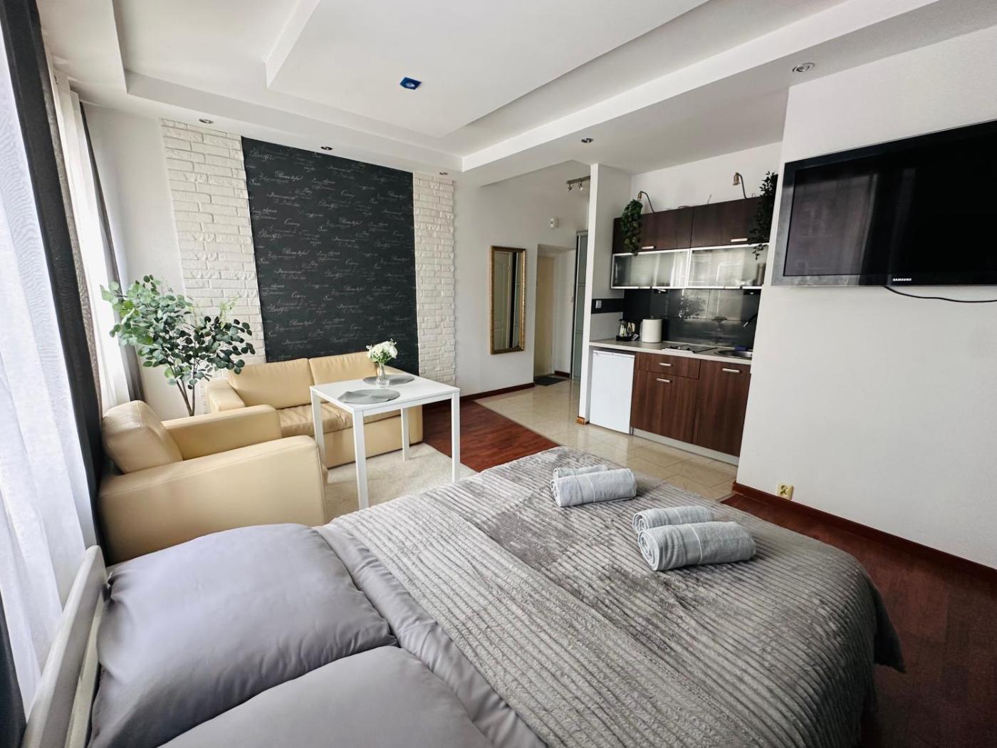 Room #1583785801. This apartment includes 1 bedroom, a kitchenette and 1 bathroom with a shower and a hairdryer. In the well-equipped kitchenette, guests will find a stovetop, a refrigerator, kitchenware and a microwave. This apartment has a washing machine, a tea and coffee maker, a flat-screen TV with cable channels and a patio. The unit has 1 bed. Apartament - 2 osobowy. Powierzchnia pokoju ok.: 28 mkw.
